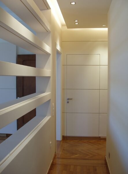 This is a 130 sq. m apartment located on the 6th floor of a residential building built in 1932, situated in Kolonaki. Initially, it was a one-bedroom apartment, which was not suitable for a family of four.