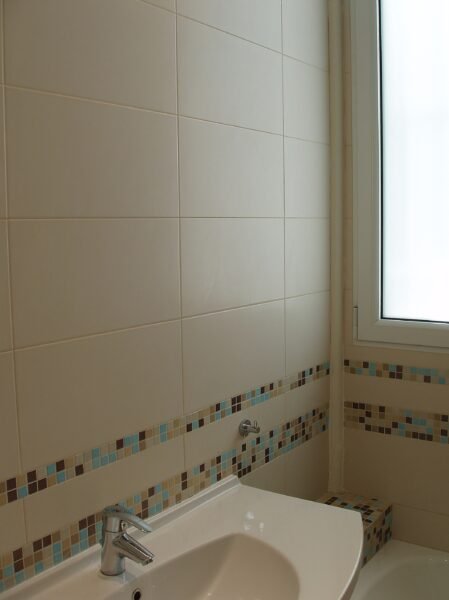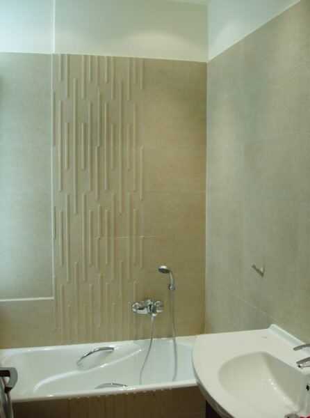 The master bedroom, complete with its own bathroom, was positioned where part of the previous living room and entrance had been. The large old kitchen and a small adjacent room were completely redesigned to create two new bedrooms. Additionally, two more bathrooms were added—one for the children and one for guests—located near the master bathroom.
