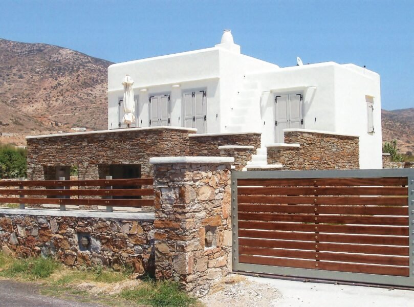 New houses on the island adhere to the principles of Cycladic architecture, which impose strong limitations on the morphology of building elements, including windows, doors, chimneys, and materials, in order to preserve the regional character of the island.