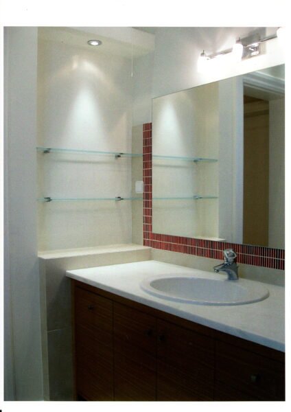 The goal of the renovation was to transform the apartment into a contemporary home. This was achieved with minor changes to the floor plan, as well as updates to the electrical and plumbing systems. The windows and shutters were replaced to enhance insulation and energy efficiency while retaining the original window designs to preserve the building’s character.